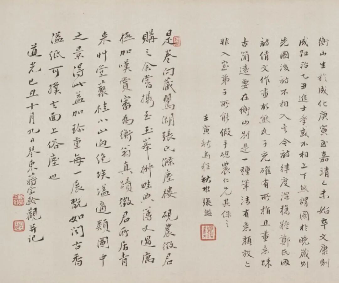 明人张丑的《真迹日录》里记载着这么一条:文太史的《藂桂斋图》是真迹,后面有顾鼎臣、黄云、周恭、顾潜、方鹏、方凤、张祯等人给郑子充的题诗。