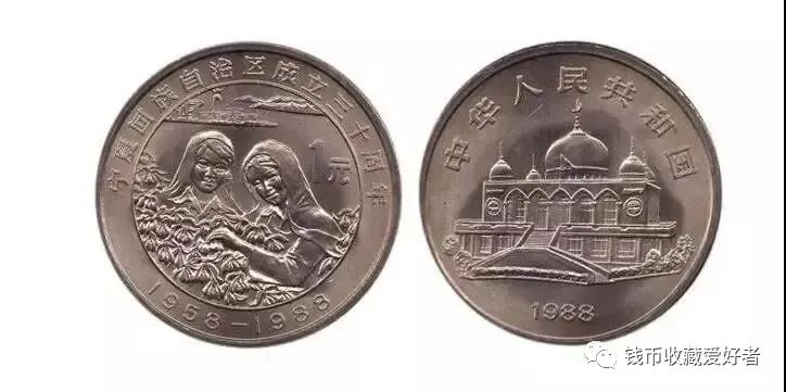 宁夏回族自治区成立30周年纪念币是116枚纪念币中发行量最少的纪念币。为了庆祝1988年是宁夏回族自治区成立30周年,中国人民银行在1988年9月20日发行了宁夏回族自治区成立30周年纪念币,面值是1元,重量为2.16克,全套仅一枚,发行量为156万枚,是我国目前纪念币发行量最少的一枚纪念币。