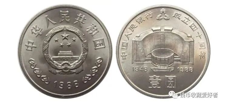 建国35周年纪念币总共分为三枚,一套共计发行2041万枚,分别是开国大典纪念币、民族大团结纪念币和祖国万岁纪念币,这三枚纪念币的面值都是一元。中华人民共和国成立35周年纪念币的发行意义非常重大,而且因为发行的时间早,如今留存下来的中华人民共和国成立35周年纪念币的数量也已经不是很多了,这也让中华人民共和国成立35周年纪念币的更显得尤为珍稀,所以如果是有收藏到中华人民共和国成立35周年纪念币的一定要好好保存。 中国人民银行成立四十周年纪念币是116枚纪念币中的币王。1988年12月1日是中国人民银行成立40周年的纪念日,经中国人民银行总行批准并同意,特向发行一套一枚的流通纪念币以资纪念,面额壹元,发行量206.8万枚。![]()