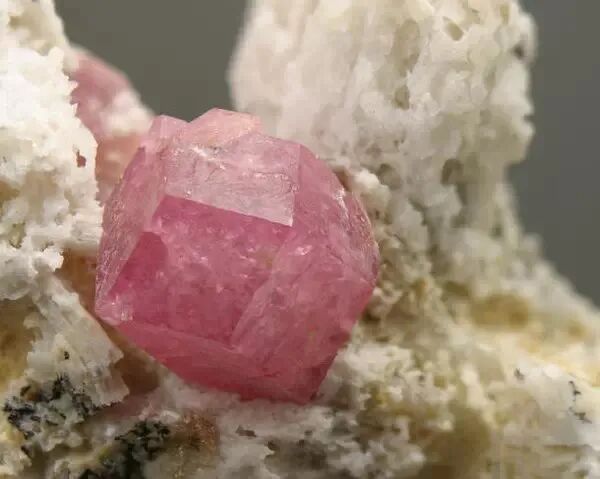 也是碳酸盐矿物,纯菱锰矿很少见,晶体属三方晶系,透明色美者可作宝石,莫氏硬度3.5-4.5 。