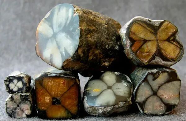 一种树脂化石,是一种有机的似矿物,含少量的硫化氢,微量元素种类有铝、镁、钙、硅等,非晶质,常以结核状、瘤状、小滴状等产出。有的如树木的年轮,呈放射纹理,可含有动物遗体、植物碎片等,莫氏硬度2.5