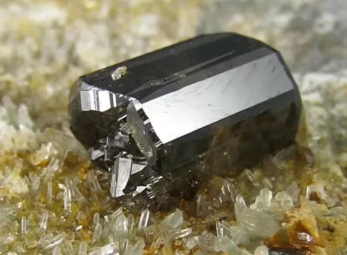 是最常见的锡矿物,含锡78.6,纯净的锡石几乎无色很少见,但一般均呈黄棕至棕黑色;条痕白色。金刚光泽,是提取锡的最主要原料矿物,摩氏硬度:6~7 。
