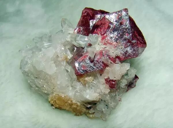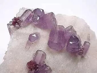 常见的晶体是八面体晶体及八面体接触双晶,常为红、蓝等色,以接近红宝石的红色得较珍贵。优质尖晶石产于缅甸。硬度8。