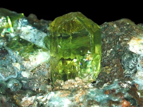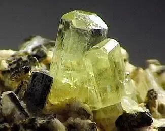 是一种复杂的硅酸盐,它是一种黄色、绿色、灰色或褐色等颜色的玻璃样晶体。莫氏硬度6-7。