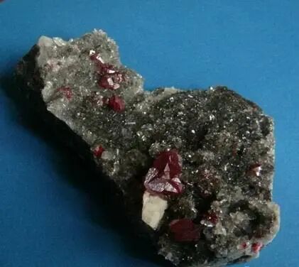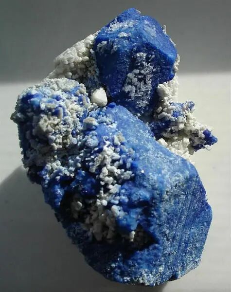 也叫石青它常与孔雀石一起产于铜矿床的氧化带中,晶体属单斜晶系的碳酸盐矿,莫氏硬度3.5-4 。