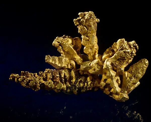 产于原生矿床中的自然金俗称山金,产于矿床的叫脉金,产于砂矿中的叫做沙金。在海水中也存在着自然金。