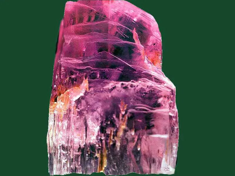 鱼眼石是钾、钙的氟化物硅酸盐矿物。常见颜色:无色、黄色、绿色、紫色和粉红色,莫氏硬度4 ~ 5 。