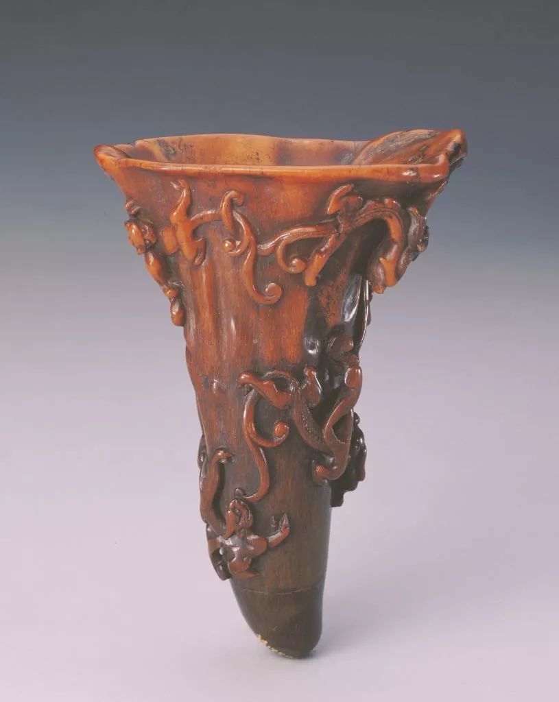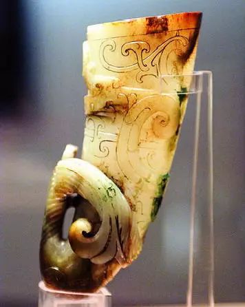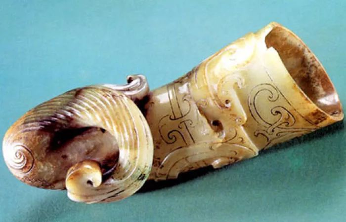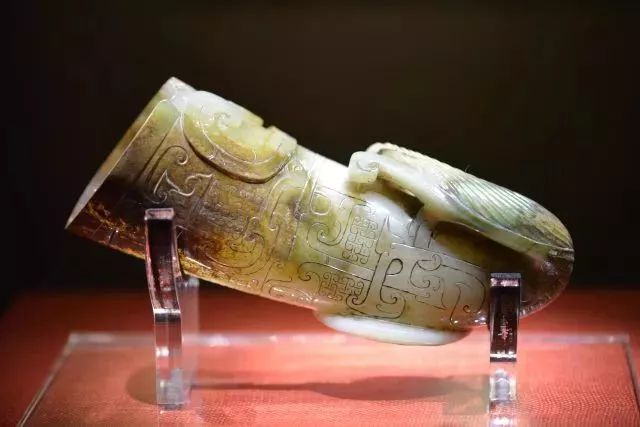 中国考古史上很多著名的国宝拥有浓厚的传奇意味,因为它们很多都是在城建、农耕或者开山等作业中无意被发现的,今天要说的这件国宝,就是在挖地基的时候闪耀登场的。1983年,广东省某公寓楼在开挖地基时,发现一块平整的大石板下隐藏着一座地下建筑,有工人认为,这可能是一座古代墓室,便立即报告了当地的文物部门。文物专家赶来后,经过初步确认,建筑工地的地基是一座西汉石室古墓,由于挖掘公寓地基时已经动摇了墓室结构,考古队马上对其展开抢救性挖掘。出土了大量汉代文物。其中,一方印有“文帝行玺”的金印,以及一方印有“赵眜”的玉印,揭示了墓主人的身份——正是南越开国之君赵佗的孙子——第二代南越王赵眜。和汉代的许多王侯墓葬一样,墓主人赵眜穿着华贵的金缕玉衣,在黑暗中沉眠了2000年。@众所周知,南越王墓此后被誉为“中国近代五大考古发现之一”,后来也就地建设了南越王墓博物馆,然而,这两方印并不是我们今天的主角,南越王墓中最令人惊叹的宝物,是这件出土时无法直立的玉杯。在墓主人棺廓的头箱里,专家们时隔两千年,第一次拿出了这件玉杯。它通高18.4厘米,口径约6厘米,壁厚0.2厘米,重372克,通体由一整块青白玉雕琢而成,呈现出兽角的形状,杯身有浅浮雕装饰的连云纹,杯尾卷曲成飞卷的浪花,杯腹中空。其一,汉代人认为用玉制成的容器饮酒,酒的味道会更加醇美;其二,独角兽犀牛在古代是神兽,用它的角制成的杯子,据说可以解毒,以此饮酒就不怕有人下毒了。但想见一眼犀牛,在当时可不是容易的事儿,所以往往使用别的材质,比如玉,以高超的雕工,还原犀角的形象,这一类产物,通称角杯。古人认为,角杯借鉴了犀角的外形,也就延伸了其解毒的功效。刚出土之时,专家发现这件玉杯怎么摆放都无法直立,最初以为是遭到了破坏而损失了底座,但经过研究却发现,这件玉杯压根儿就没有设计底座,只能躺倒放置——那南越人怎么用它喝酒呢?原来,这是因为战汉时期南越民风彪悍,饮酒往往率性而为,这件玉杯便是当地粗犷饮酒习俗的具现化——由于玉杯不设底座,所以酒一旦入杯,就只能由持有者一饮而尽后才可能放下,决不允许“养鱼”的情况发生。在2002年,这件玉雕角杯登上“首批禁止出国(境)展览”的重要文物,如此地位,当然不光是它背后蕴含的这些酒文化,而是因为它真的是一件独一无二的“国宝”。首先,这件玉角杯,是明代以前唯一一件汉代遗作,在玉器史上占据极为重要的地位;其次,玉杯的材质是当时尚且产量不高的新疆和田玉。由一整块上好的和田玉玉材雕琢而成,工匠就和田玉的特殊外形施刀,才成就了这件专供南越王使用的角杯。再次,工匠在杯身上巧妙地布局了各式各样的纹饰,不突兀又非常明显,浑然天成。杯壁最薄处被打磨得仅有2-3毫米,在长时间的使用下,甚至如瓷釉般光滑,很难想象以当时的条件,要花多长时间才能得此一件成品。《韩非子·和氏》中说:“王乃使玉人理其璞,而得宝焉。”玉雕角杯,今天得以成为传承中华民族血脉的一件国宝,是璞玉之幸,更是中华之幸。