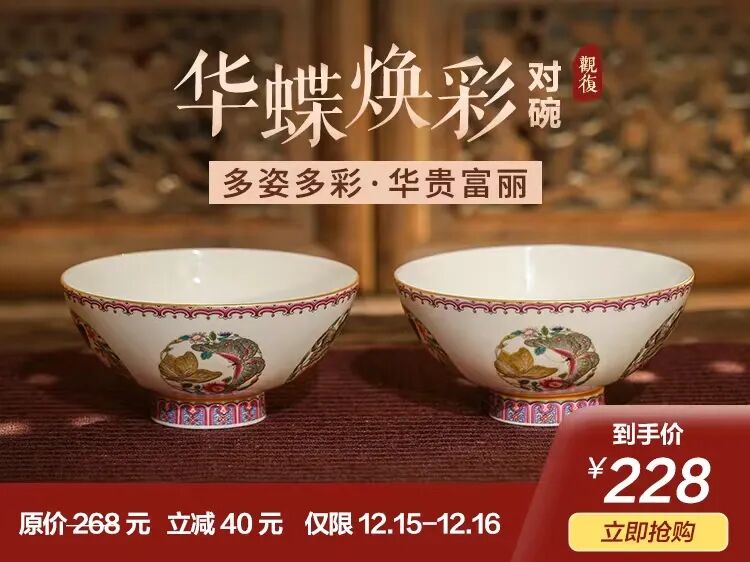 观复华蝶焕彩团蝶对碗,12月15-16日,正在限时优惠中~