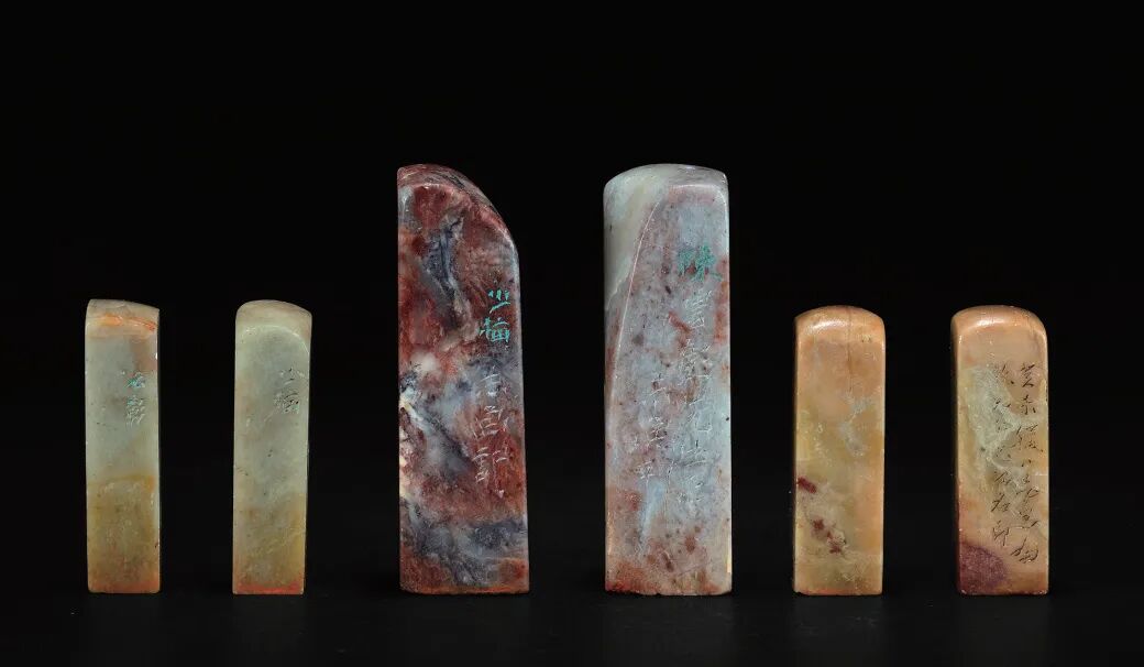 边款:1. 云彰。2. 少梅。3. 少梅,志鱼记。4. 陈云彰先生正,志鱼刊。5. 乾如仁兄雅属,通云篆志鱼刻。6. 癸未腊八志鱼为乾如仁兄治名印。