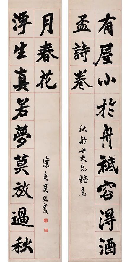 吴让之(1799-1870) 楷书“有屋浮生”龙门对