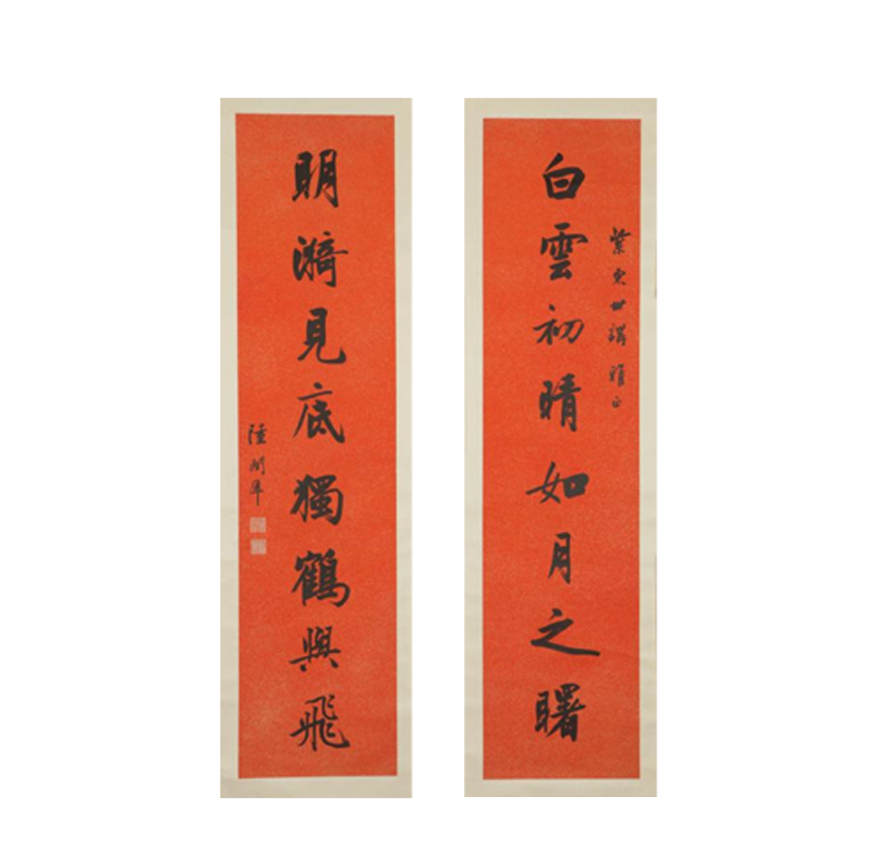 楹联出自清代陆润庠《八言行书联》,联语通过描绘天空与水面一片澄明、风和日丽的景色,表达对新春的美好期望。