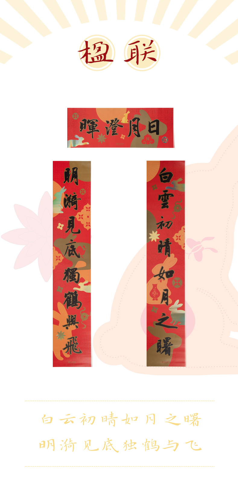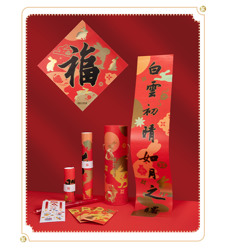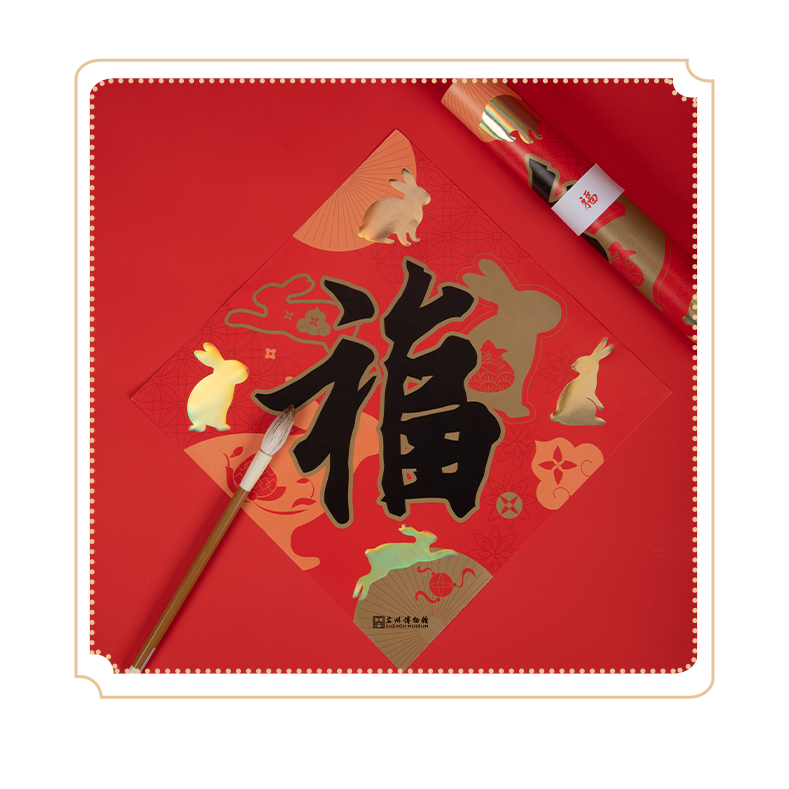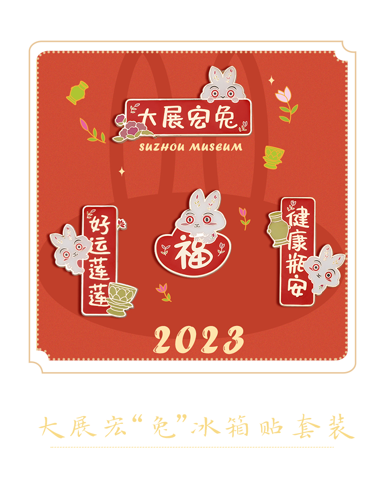 我们从馆藏中选择刺绣兔子,用可爱画风重新描绘。既是传统春联的样式,又是可以装点生活的冰箱贴,传统与现代融合,带来别有趣味的年味。