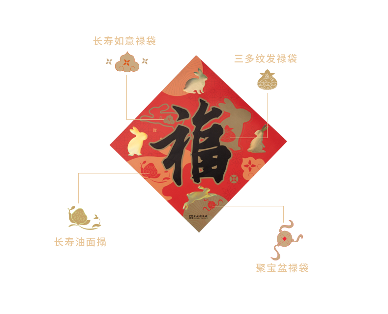 “瑞兔绣春”年礼的设计灵感,来自于中国传统纹样的民俗。古人常以寓意吉祥的纹样作为生活的点缀,这种习惯延续至今。