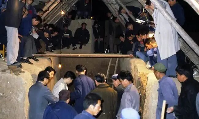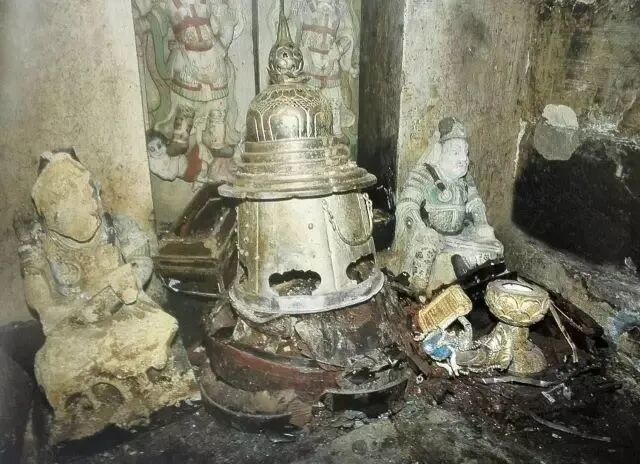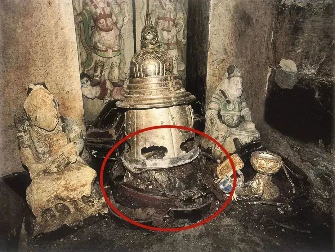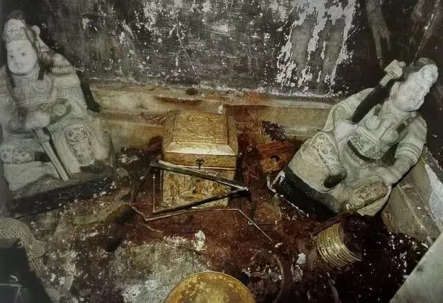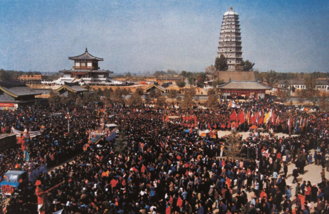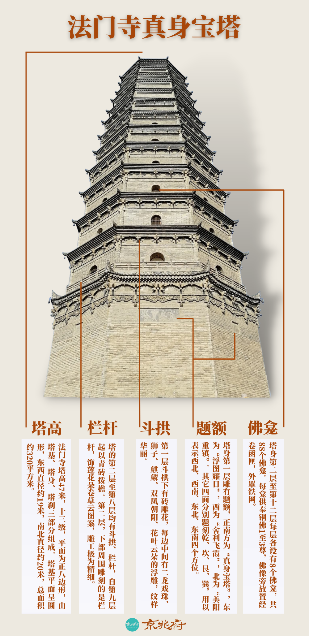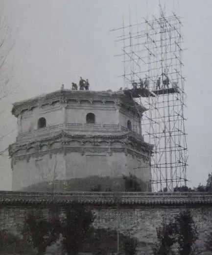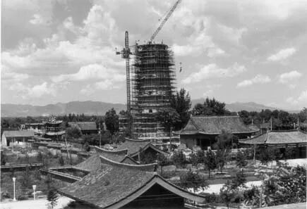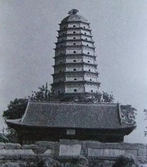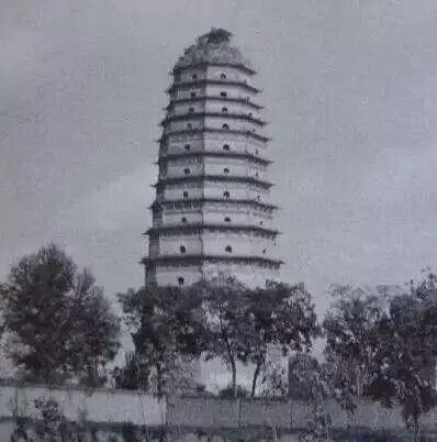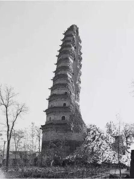 (倒塌前的法门寺真身宝塔,塔身已经倾斜)