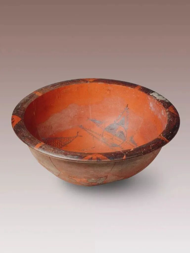 人面鱼纹彩陶盆,西安半坡遗址出土。
