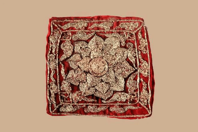 (紫红罗地蹙金绣拜垫蹙金绣拜垫)