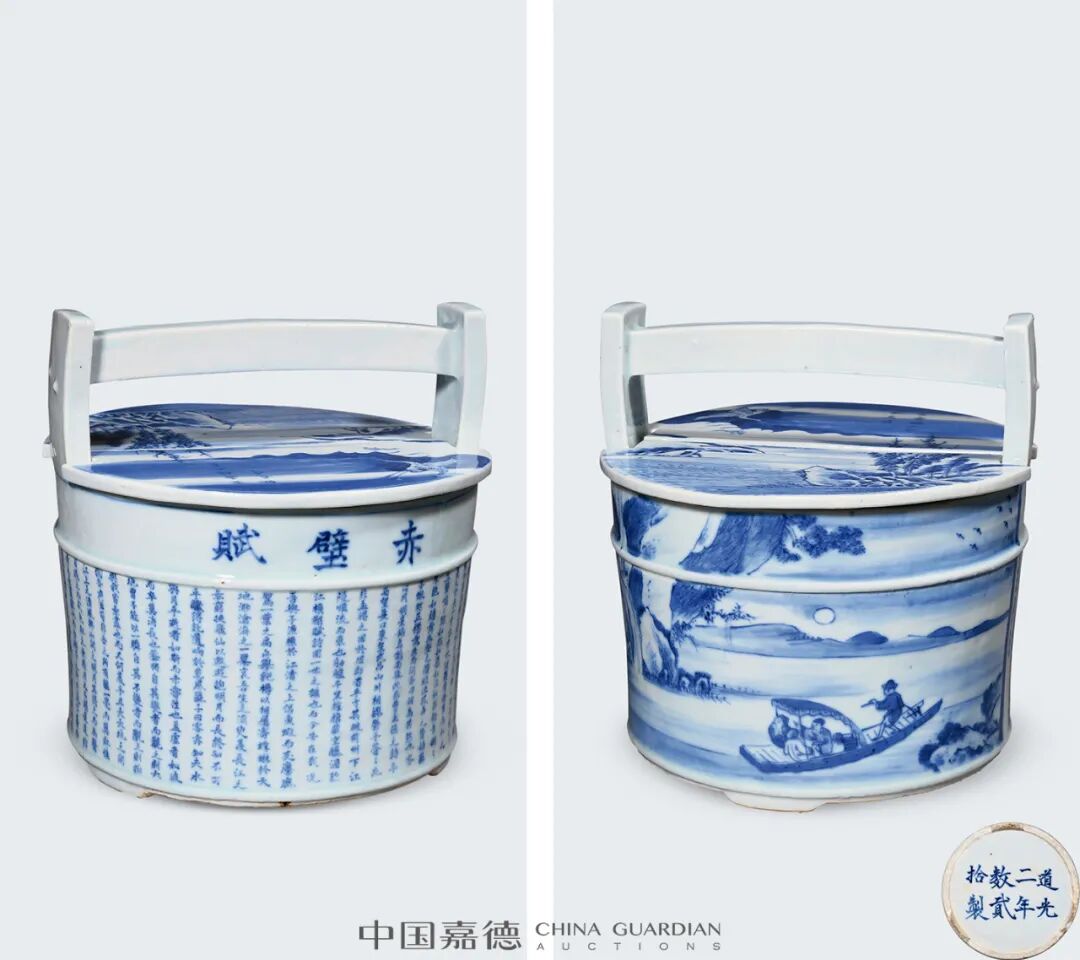 青花内荷塘清趣图外赤壁赋山水人物诗文水指