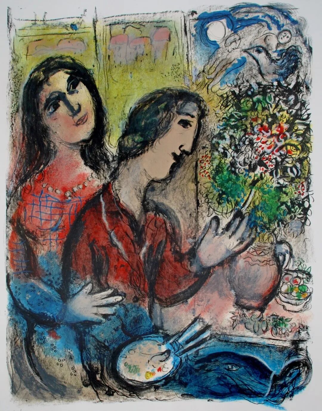 “我对各种困难无所畏惧,因为我的内心始终怀着对人类的爱和守望。在我的生命中,恰如画家的调色板一样,有着对人生和艺术唯一的色彩,那就是爱的色彩。”夏加尔如是说。