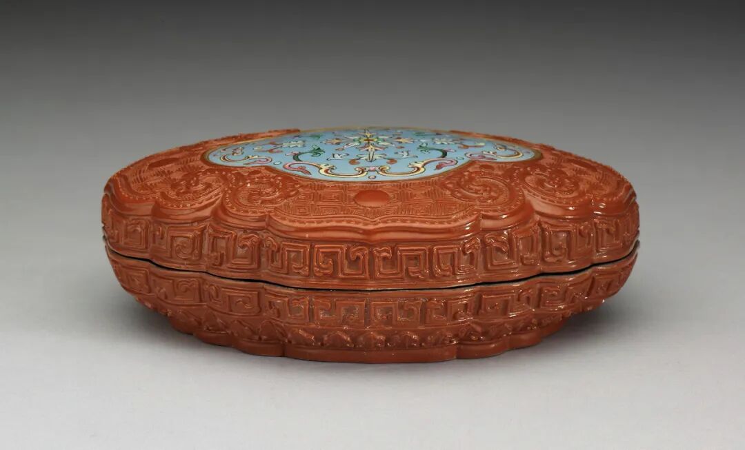 清晚至民国 珊瑚红釉南瓜形盖盒 俄罗斯冬宫博物馆藏