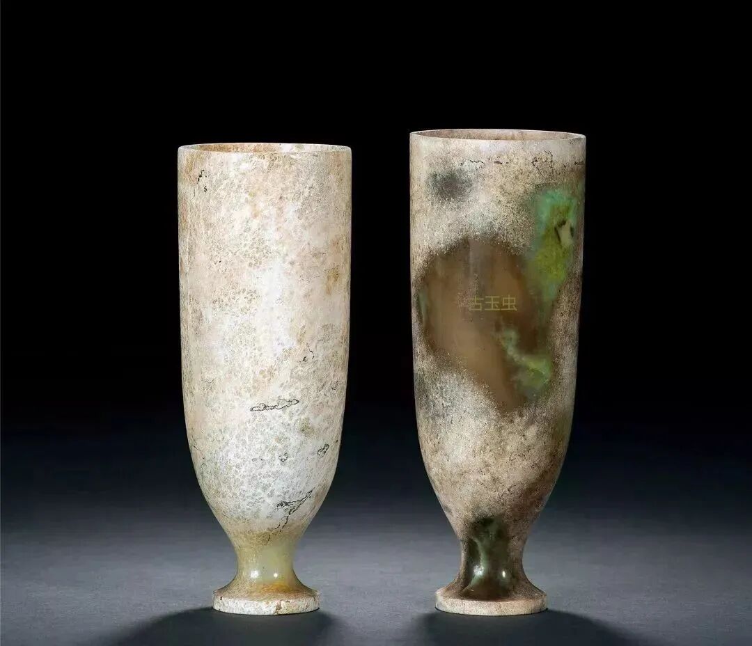 汉 青白玉高足杯 (一对)