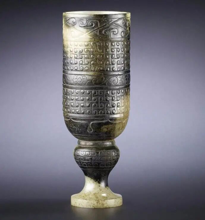 西汉青玉带皮雕高足杯,成交价:1024万港元