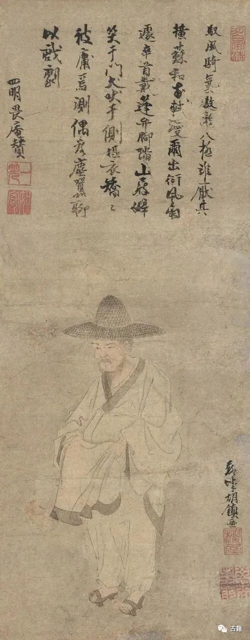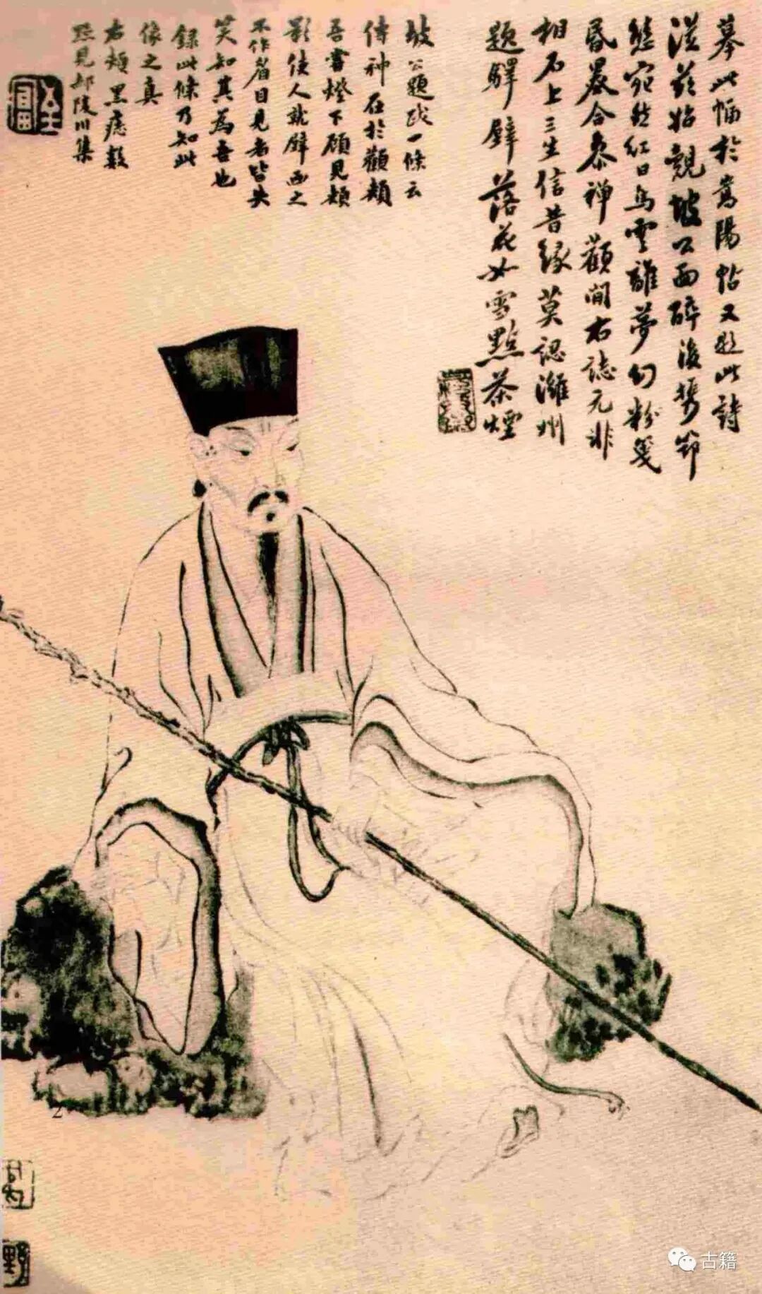 在金山寺,苏东坡看到老友李公麟画的一幅他的画像,百感交集,遂提诗一首于其上: