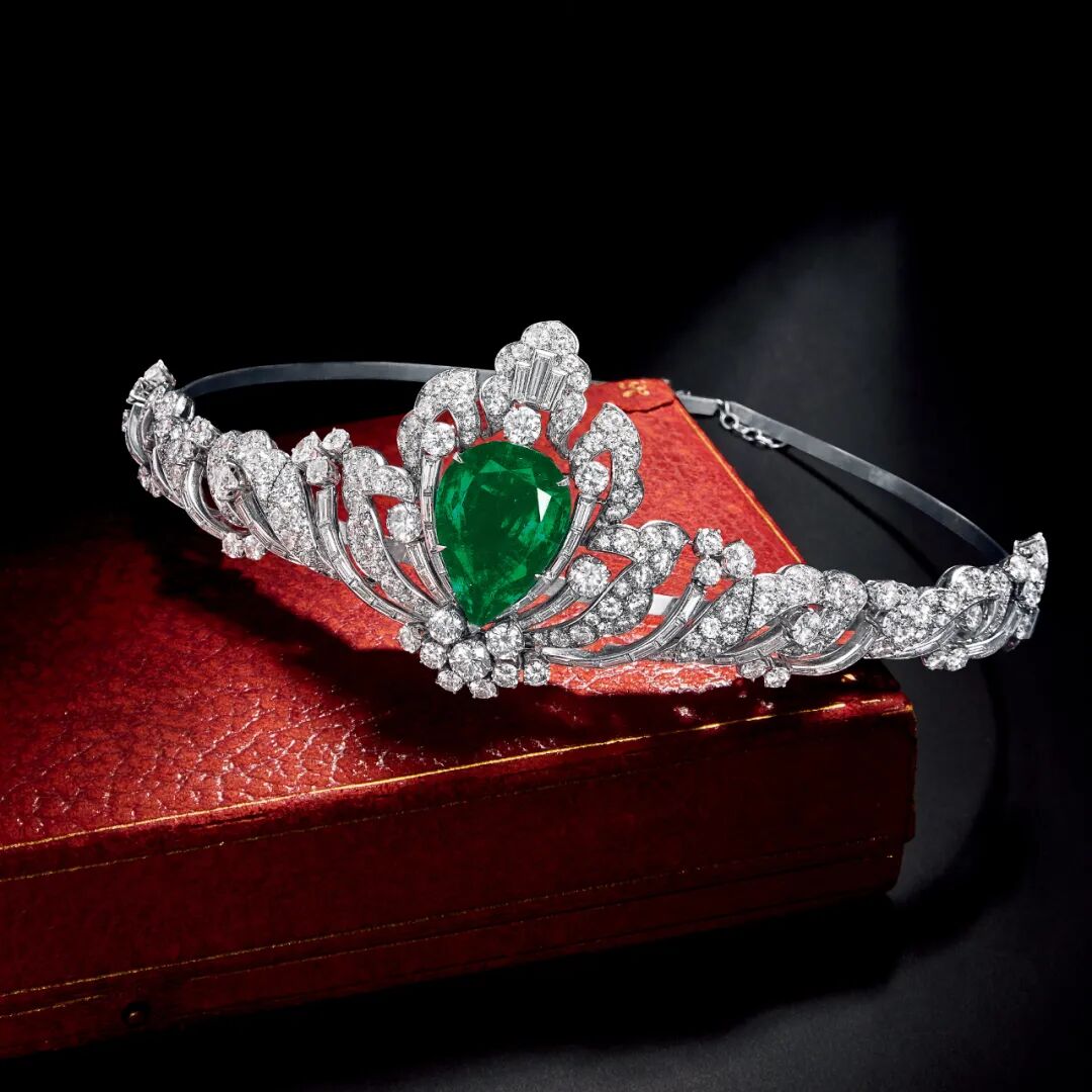 宝格丽(Bulgari)设计24.85克拉哥伦比亚「木佐绿」祖母绿配钻石手链/头冠 两用款