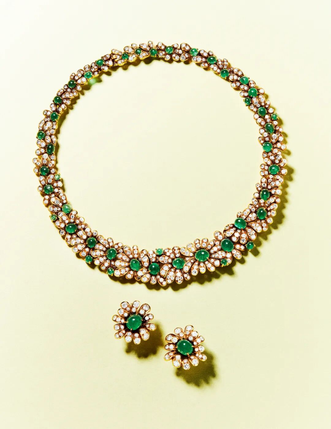 梵克雅宝(Van Cleef & Arpels)设计 祖母绿配钻石项链及耳环套装