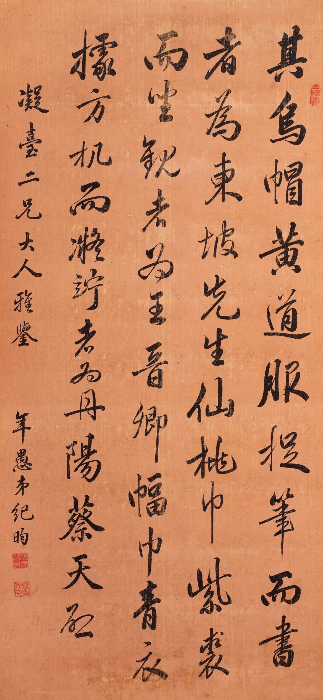 本作上款人“凝台二兄”应为纪晓岚同时的吏部侍郎杜凝台。在《阅微草堂笔记·朱五嫂》中,曾记载“尝与杜少司寇凝台同宿南石槽”。藏家当自识。