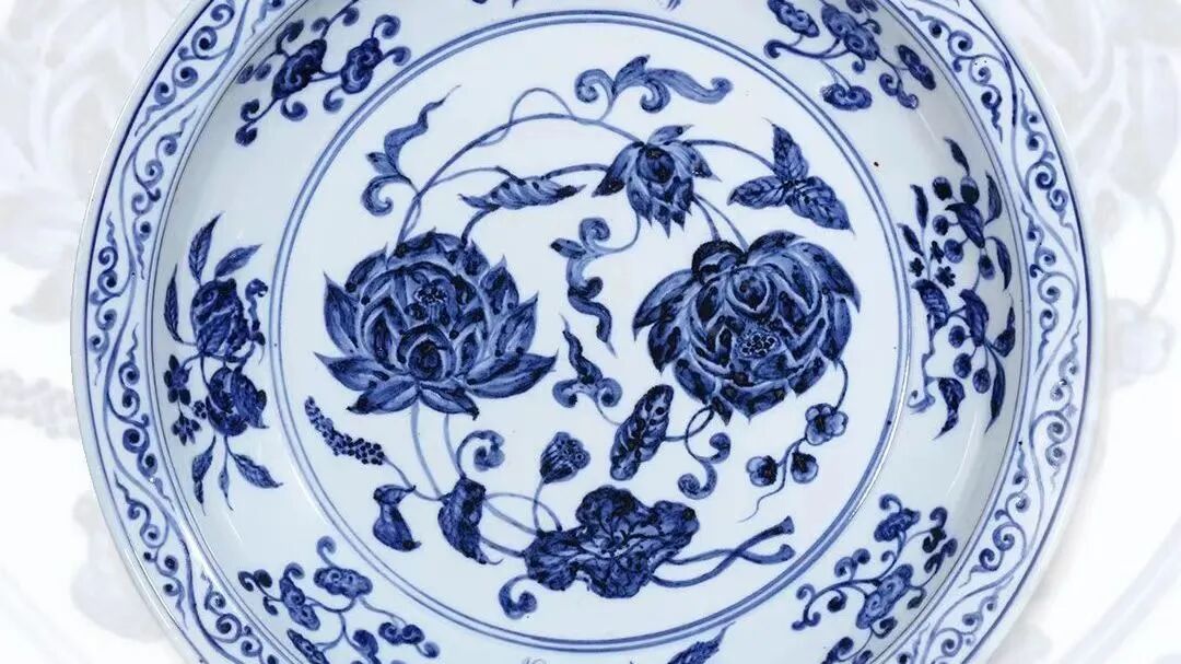 永乐遗珍 大明永辉——明永乐 青花折枝瑞果双莲纹折沿大盘 | 中贸圣佳2022秋拍