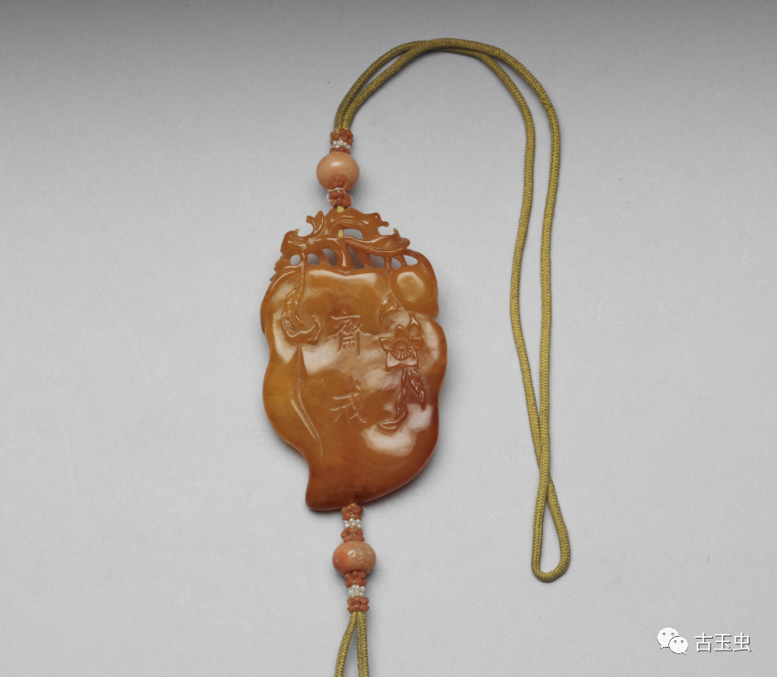 清 蜜蜡桃式斋戒牌(正面) 台北故宫博物院馆藏