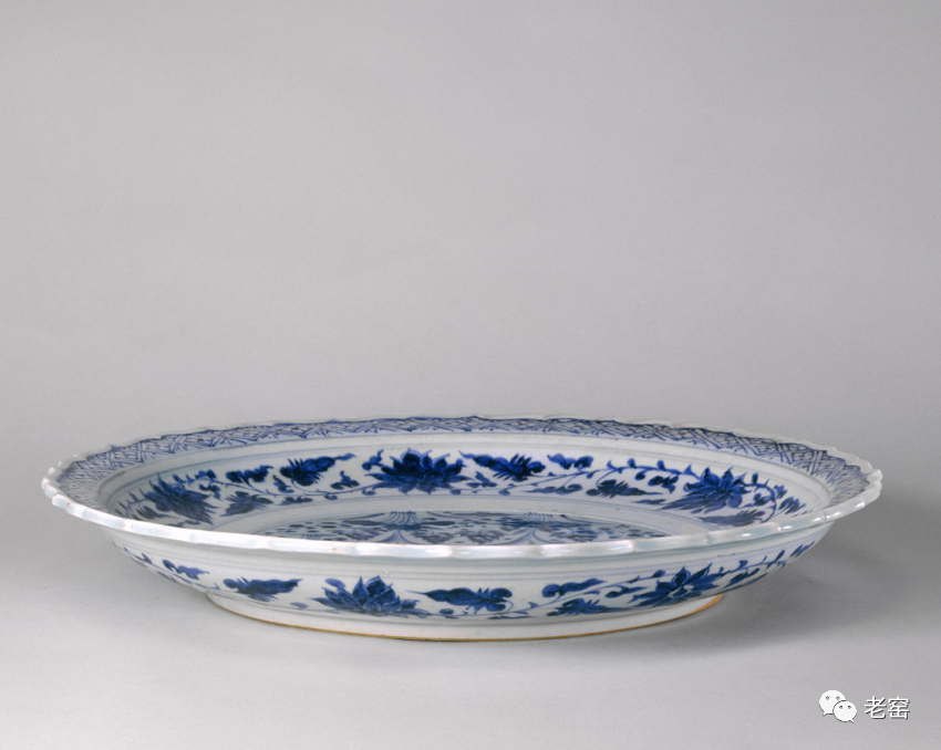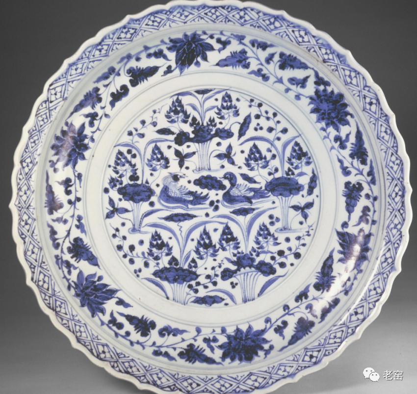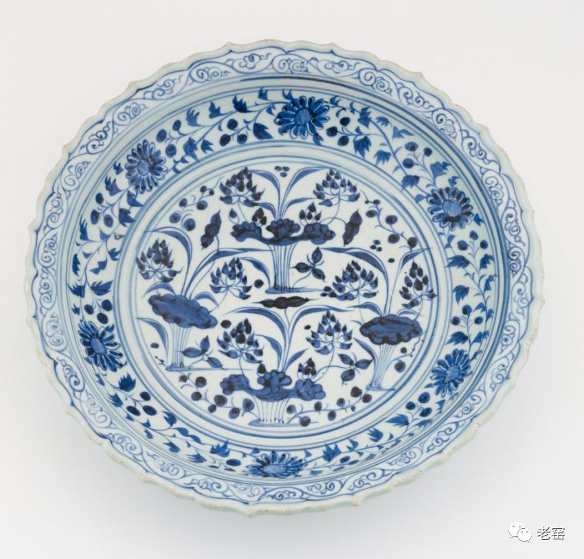 元 青花荷莲纹葵口盘 美国弗利尔美术馆藏