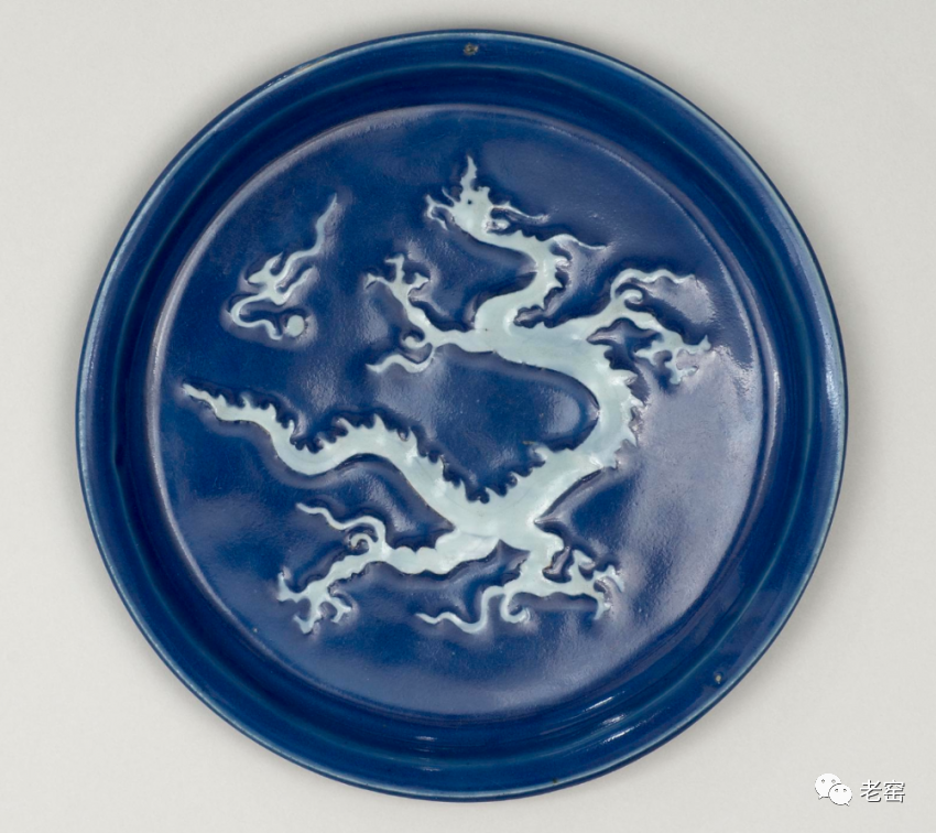 元 蓝釉留白龙纹盘(正面) 大英博物馆藏