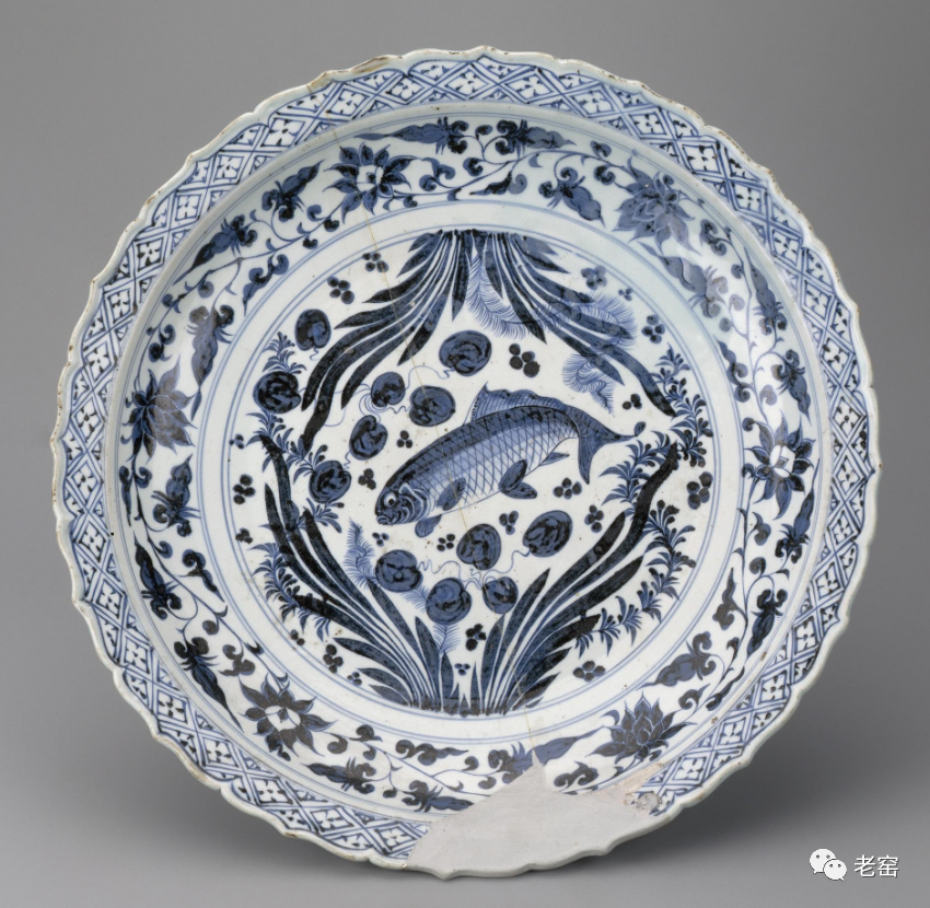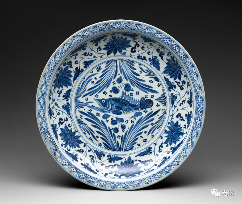 元 青花鱼藻纹盘(正面) 美国大都会博物馆藏