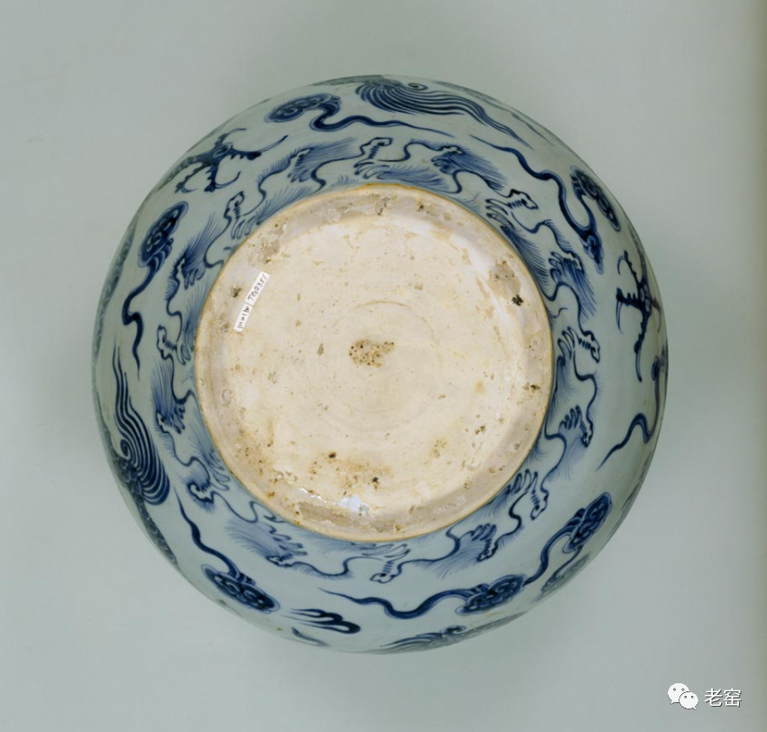 元 蓝釉留白龙纹盘(底部) 大英博物馆藏