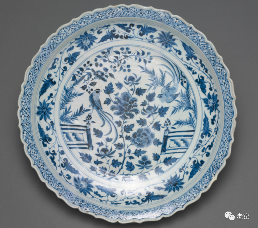元 青花孔雀牡丹纹盘(正面) 美国哈佛艺术博物馆藏