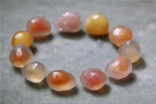 溏心玛瑙是阿拉善戈壁玛瑙的一种,主要成分是火山成因的硅质岩石,有的是被风沙吹打磨砺而成,也有的生于岩洞之中,被称为戈壁之花,可呈现多种多样的形状和颜色,缤纷的色彩,犹如糖果一般,颜值极高。