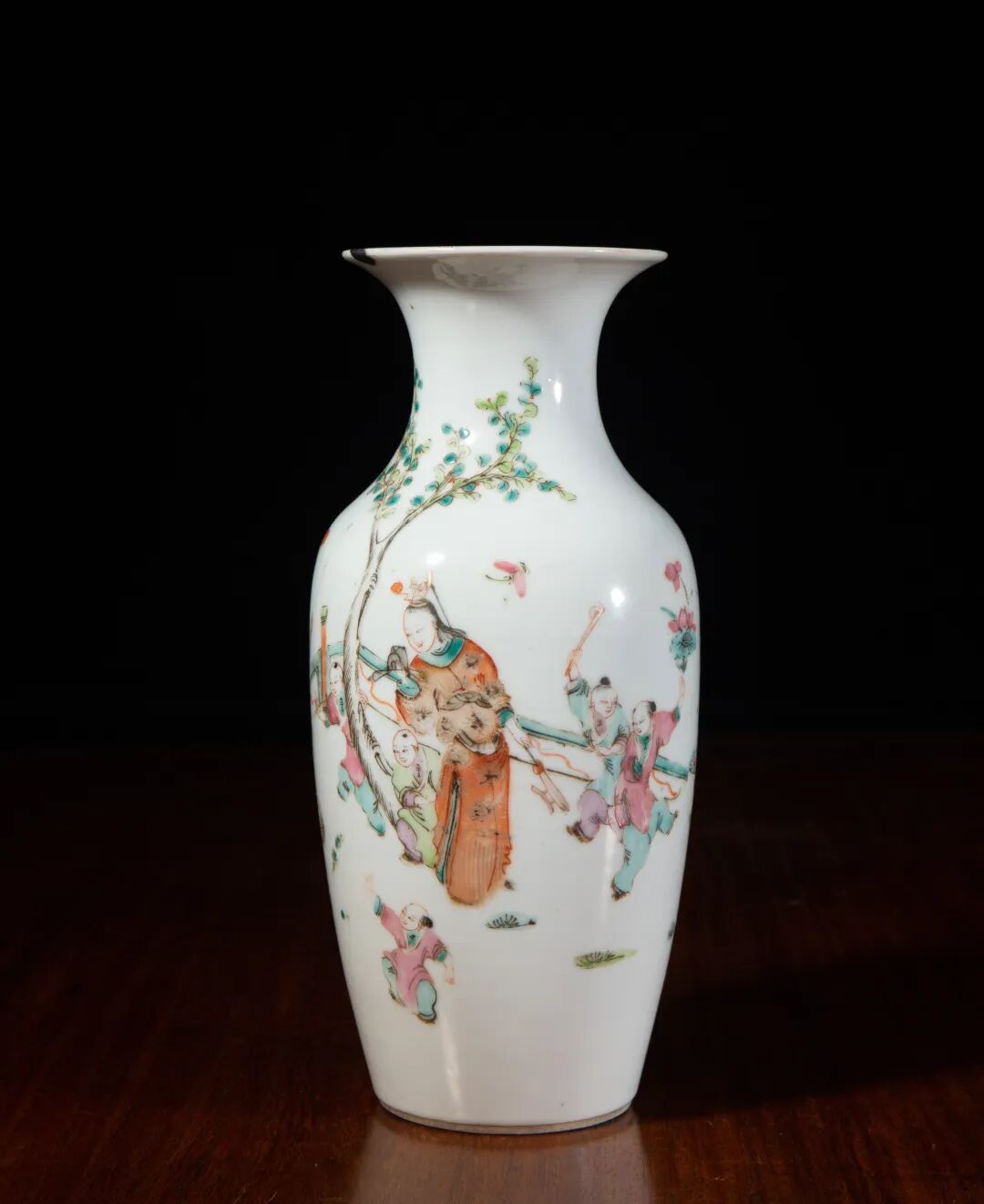 清光绪 矾红彩太狮少保兽耳衔环瓶