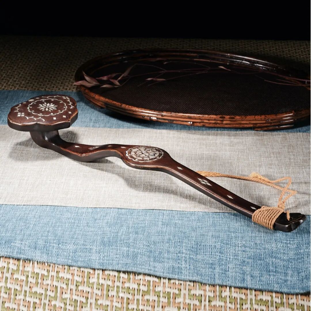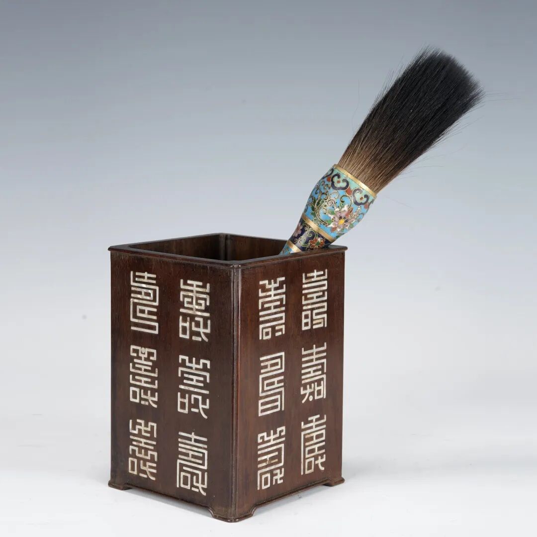 清 紫檀嵌宝寿字笔筒珐琅毛笔