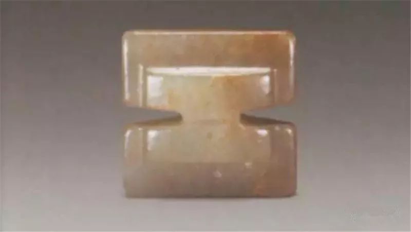 形如工字,扁长方体,又因分上下两节,为两长方柱相连形,横腰环一凹槽,也称“两节佩”。顶端置有一勺,下端琢一地盘,全器光素无纹。在中间凹细处或小勺柄处,有一个横穿或竖穿的孔,可穿系佩挂。此器用于辟邪,汉代时最为盛行,多见于墓中,出土数量不多,后世有仿品。