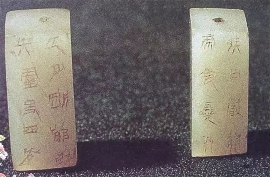 刚卯严卯是汉代独有的一种佩玉,一般成对出现,均作小方柱形,一般长约2厘米,宽约1厘米,玉器上下穿孔贯通,以穿丝带佩戴之用,但是当时的古人具体是如何佩戴它们的,并没有文献记载。