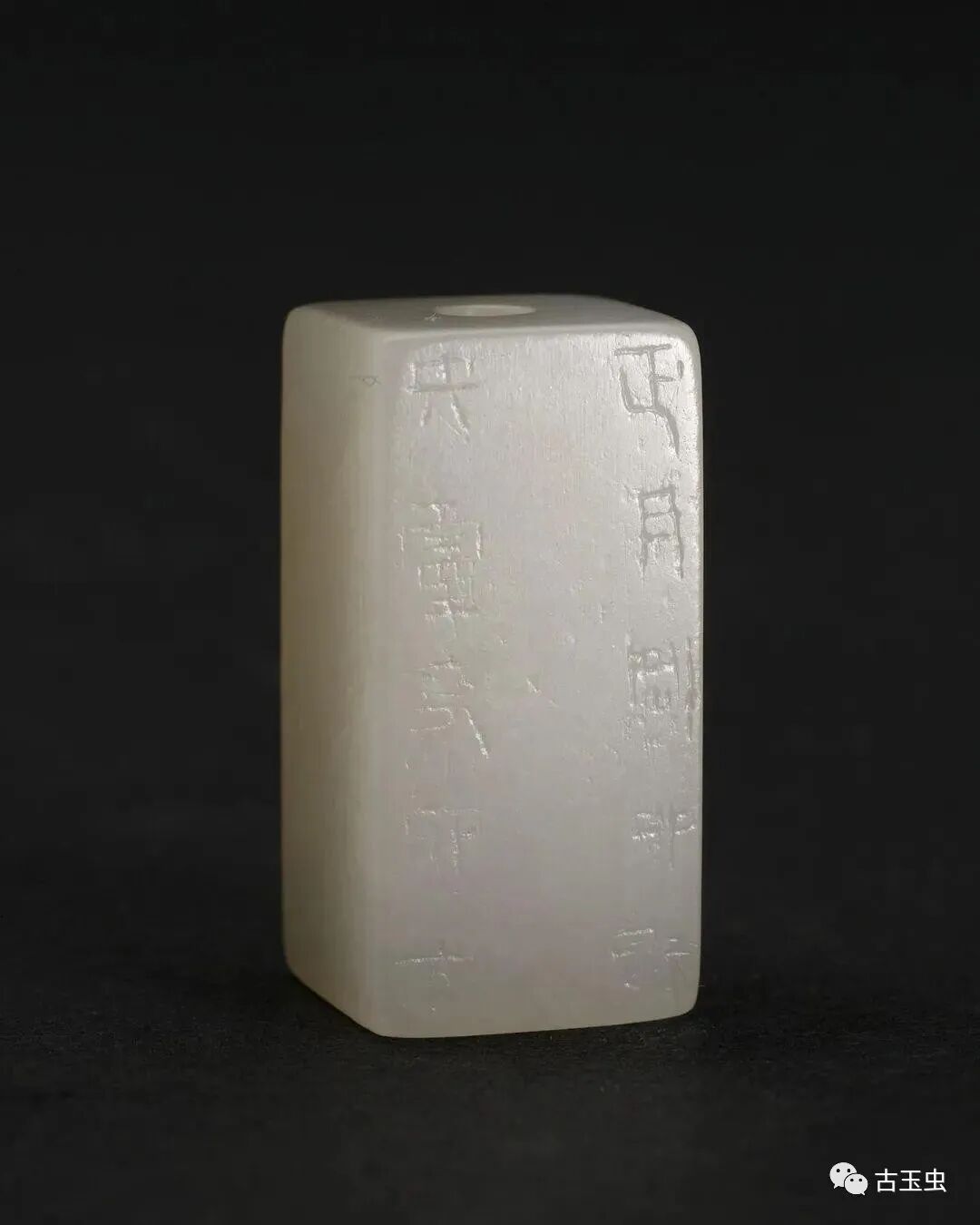 出于对汉玉刚卯的尊崇,明清两代人对其亦有仿古、伪古作品,所仿制的除四方柱形体外,还有关注古玉虫六棱、八棱体,大小也不一致。铭文有篆书、隶书、殳书等,它们继承了汉玉刚卯严卯的一些神韵,显得古朴神秘。其中制作较精的,也是值得珍藏之物。
