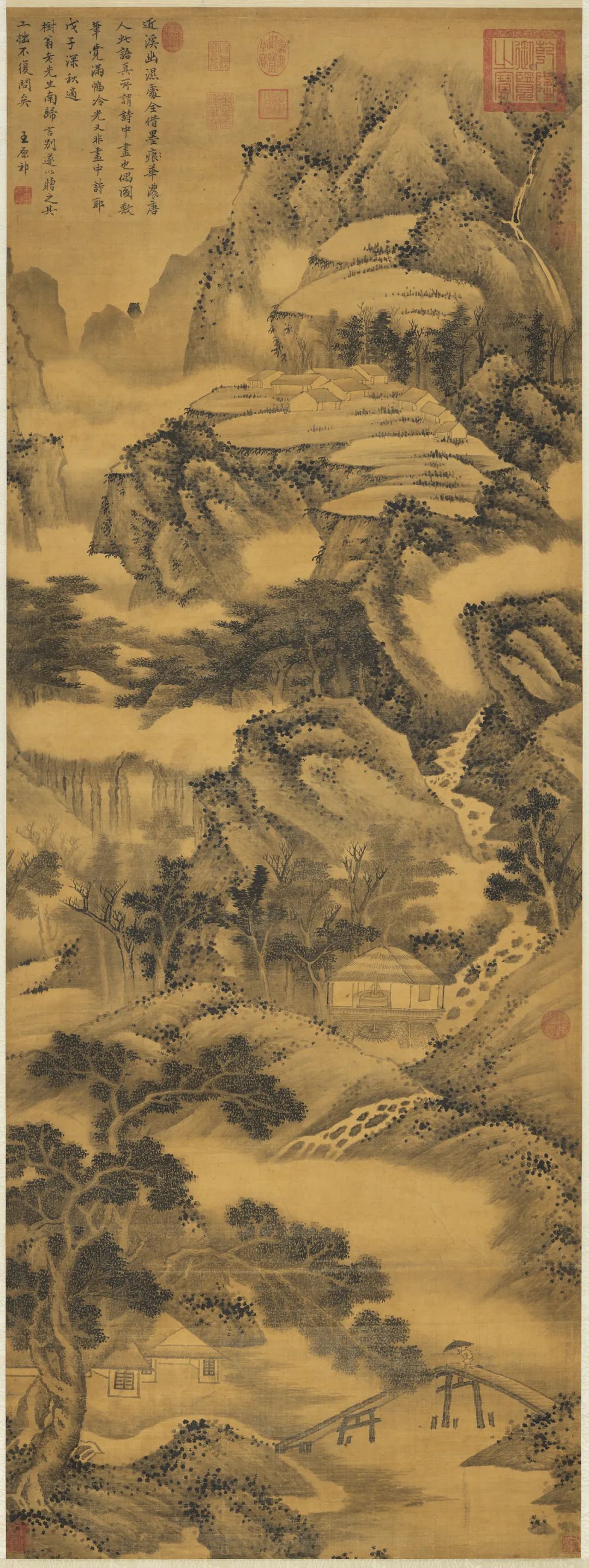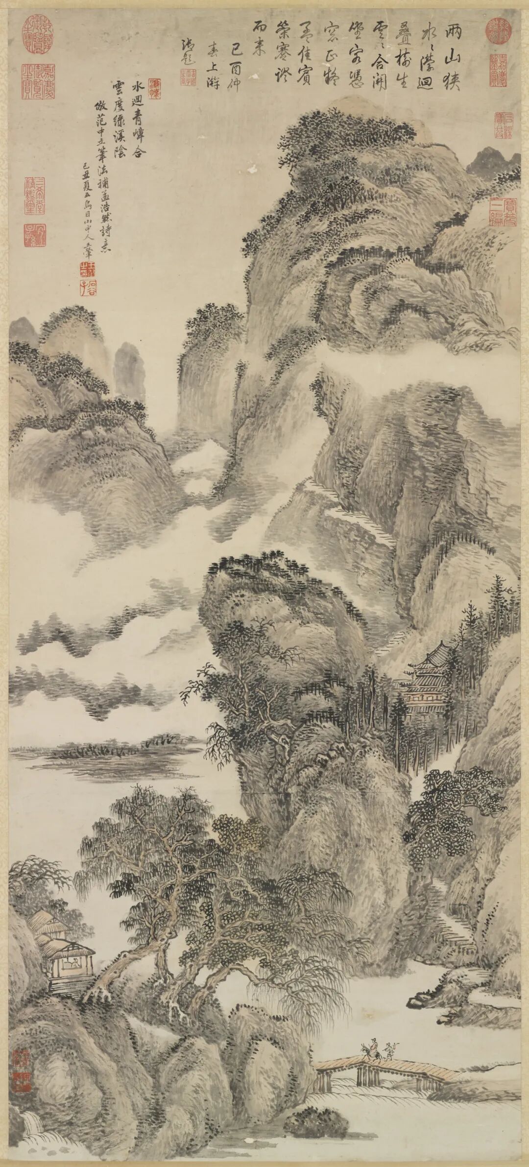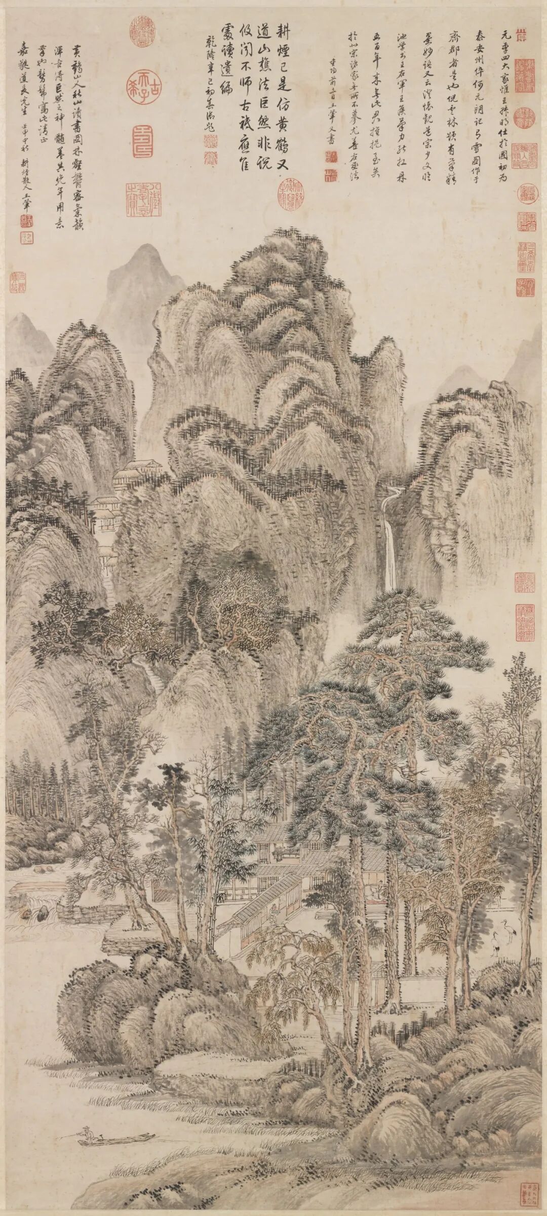 万壑树声满。千崖秋气高。仿王叔明。王鉴。