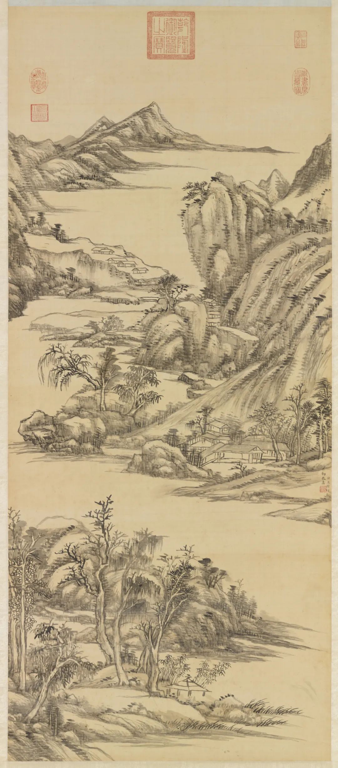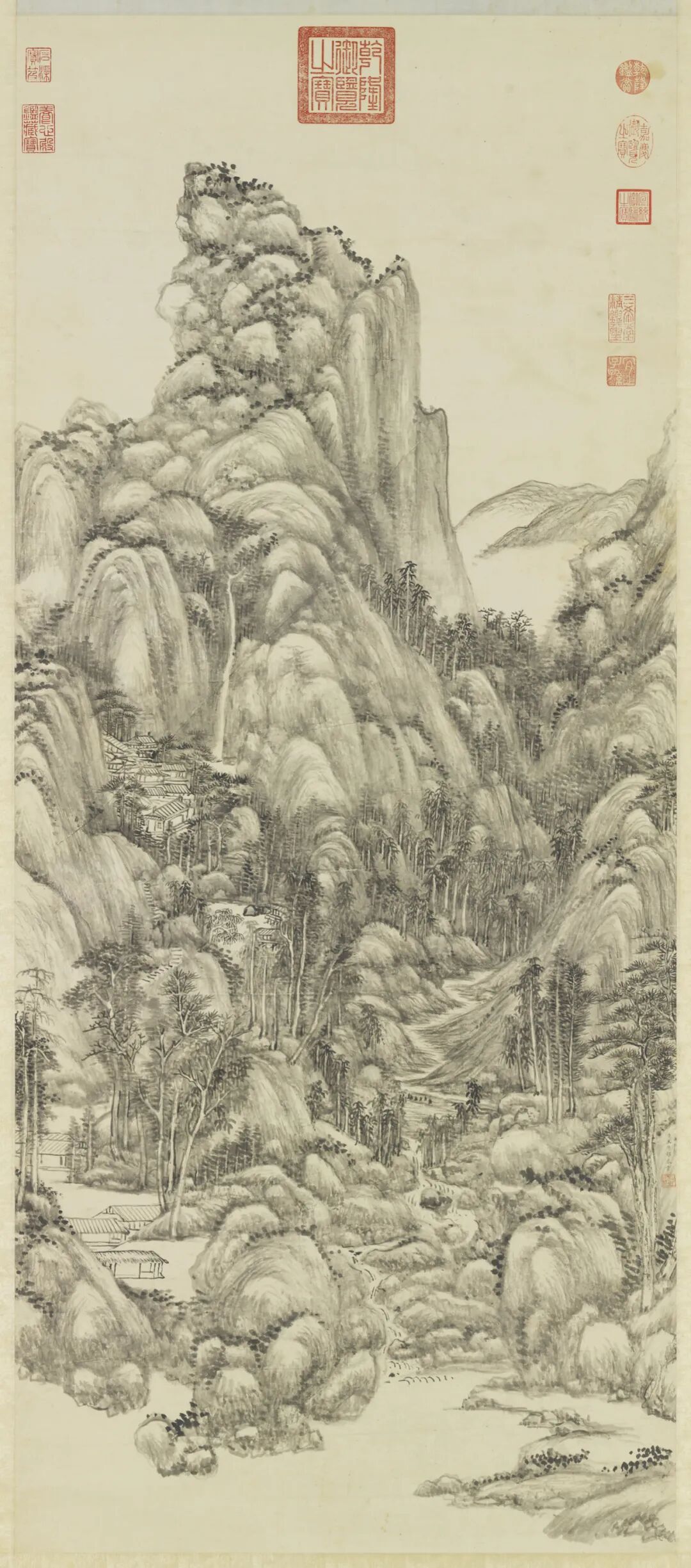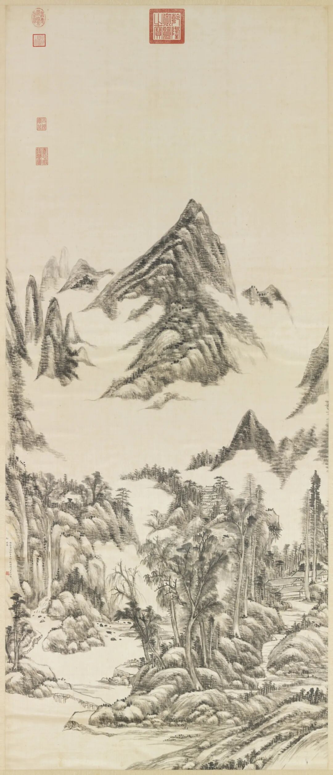 万壑树声满。千崖秋气高。仿王叔明。王鉴。
