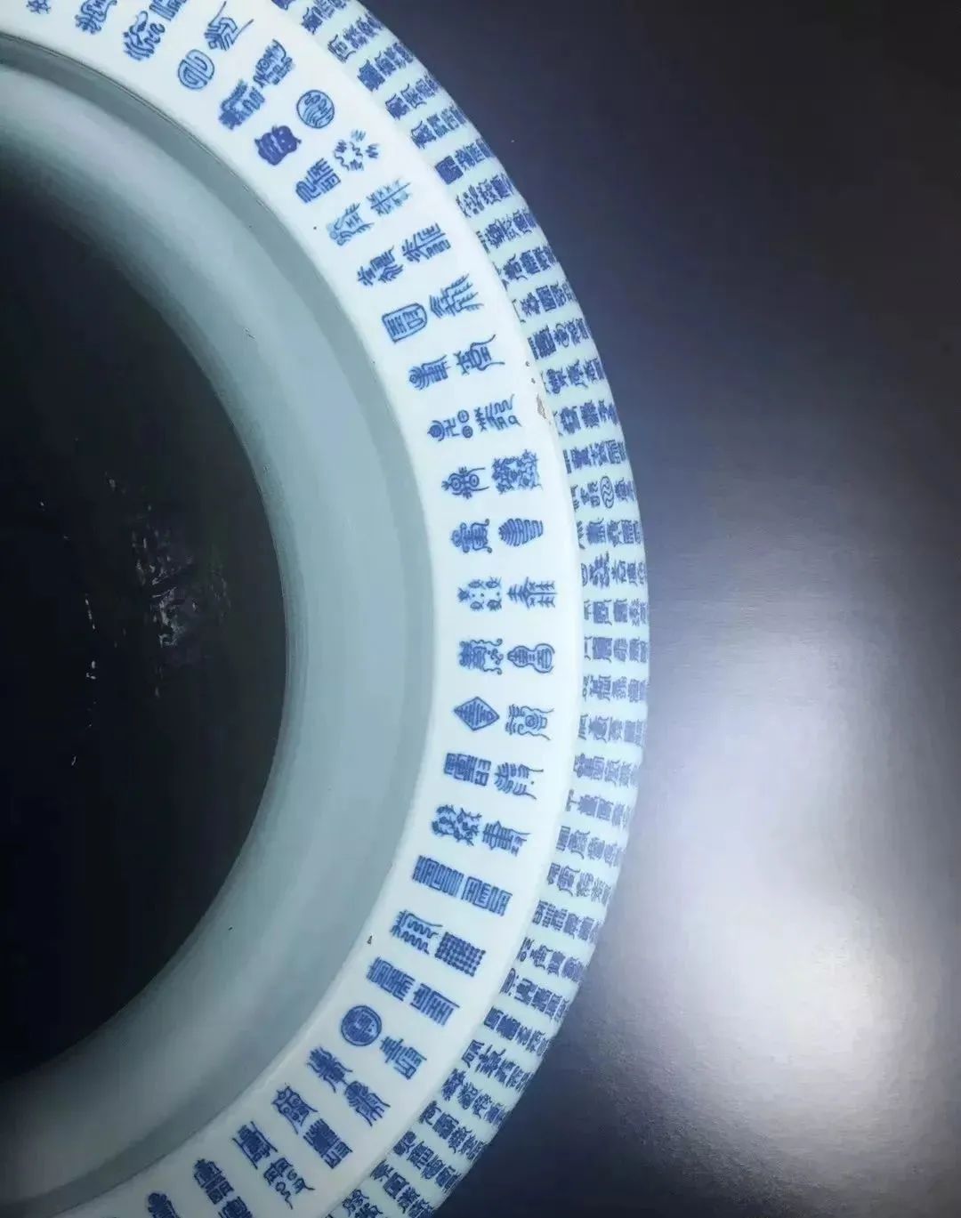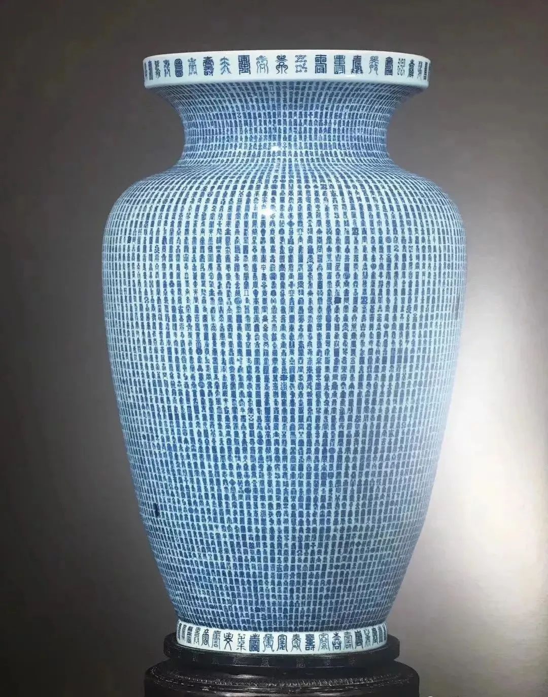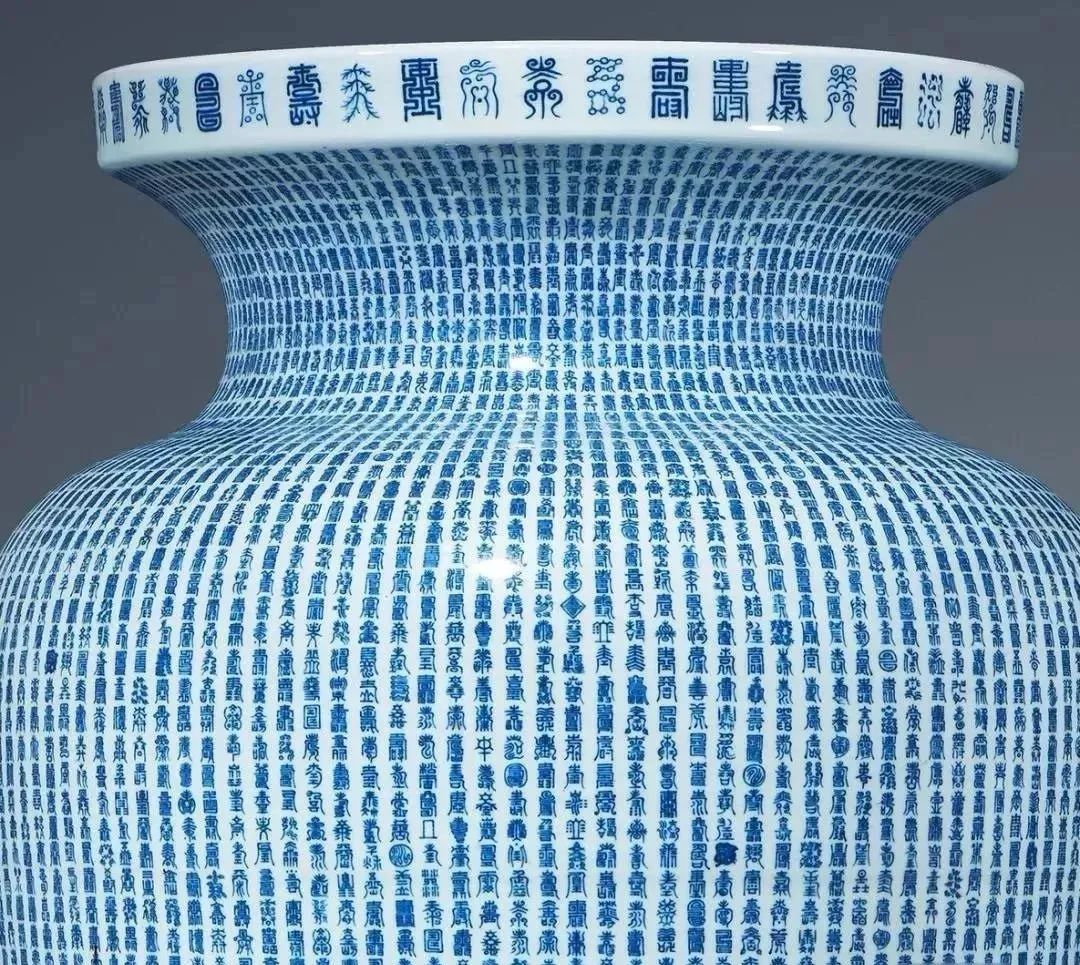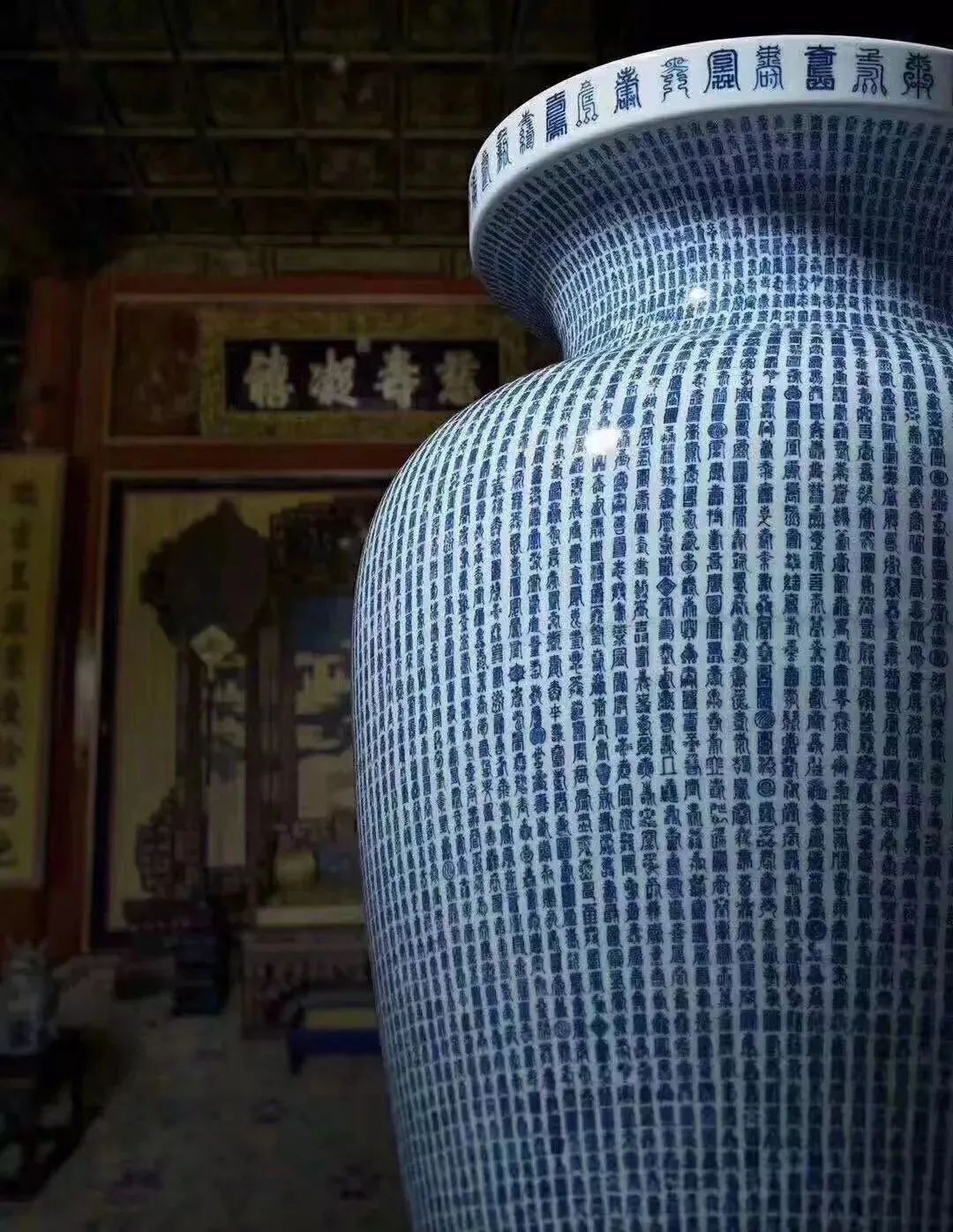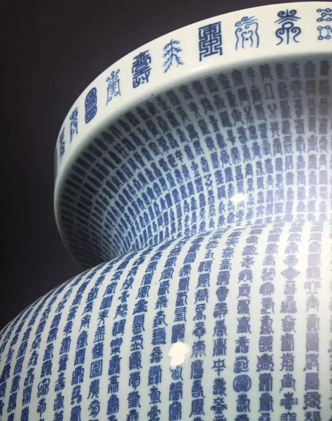 文字,是文明和文化最基本也是最重要的符号和载体;载有一万个字的康熙青花万寿尊,构思巧妙,立意非凡,承载了一个王朝和时代几乎所有的诉求和象徵,包括政治、历史、文化、经济、艺术、财富、审美、图腾、权力、社稷、天地君亲、万方安和,都能在万寿大尊上找到鲜明的踪迹,可谓前无古人,后无来者。