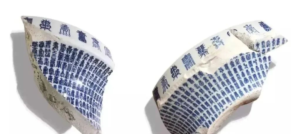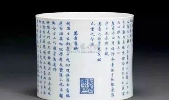 2007年至2011年北京拍卖会上先后出现了两只书写《万寿尊赋》,并落有「熙朝传古」和「大清康熙年製」款的青花笔筒,引起了林业强先生的关注。两只笔筒均为康熙时期烧造,各方面特徵也高度相似。以《万寿尊赋》的内容考量,无论赋文还是笔筒,均应创作、烧制于康熙青花万寿尊告成之后。