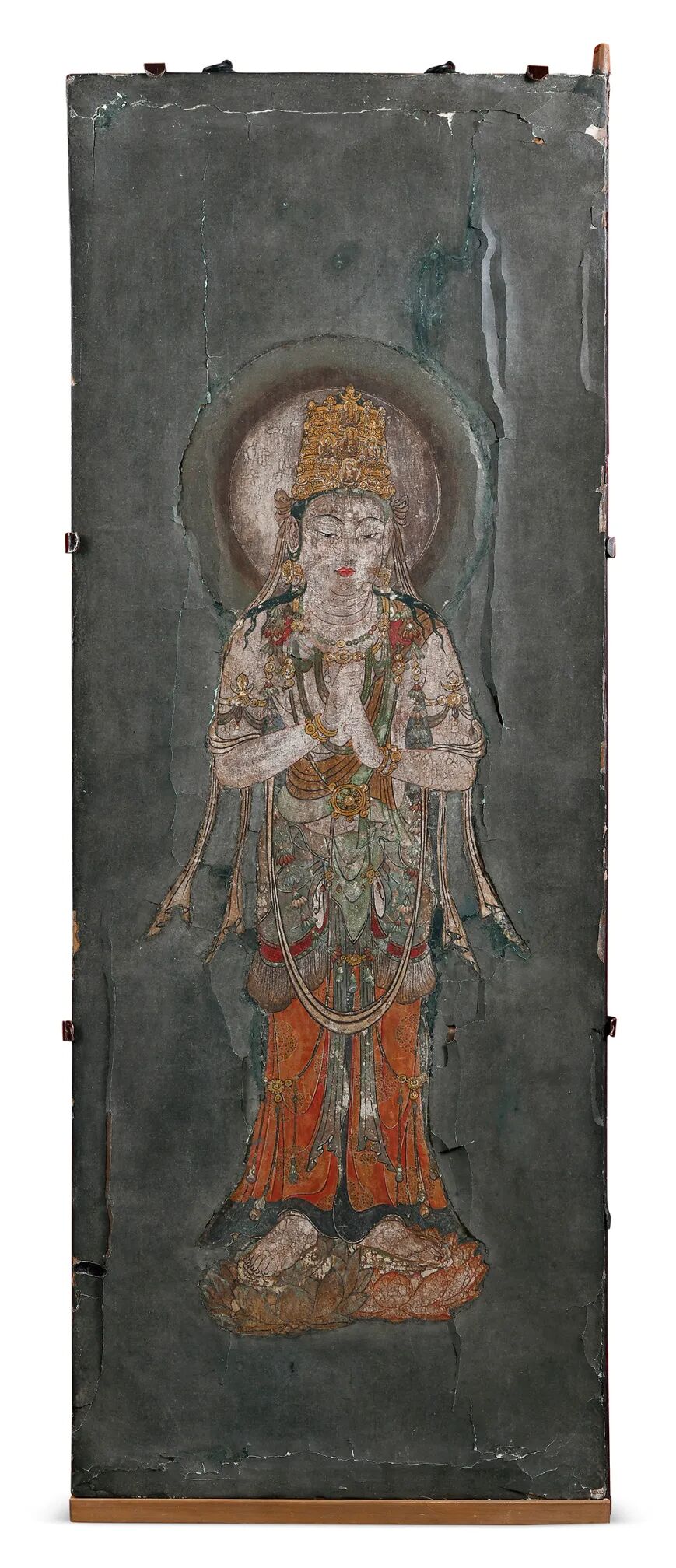 元 黑漆彩绘观音像门板