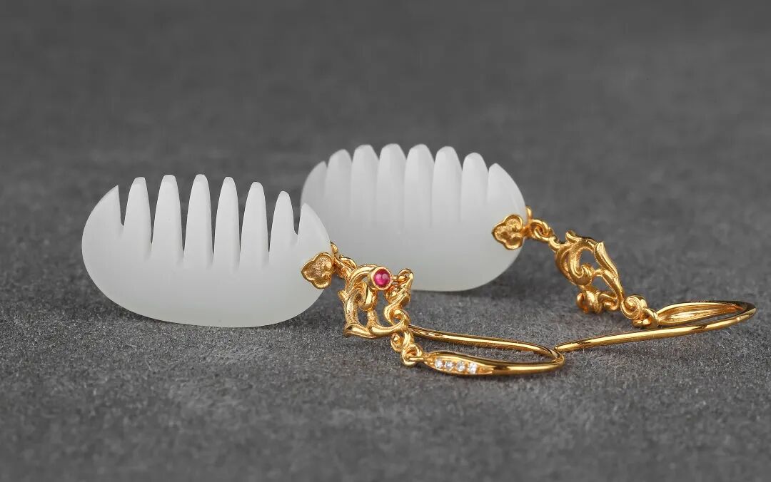 和顺耳坠 新疆和田玉籽料(18k金镶嵌)