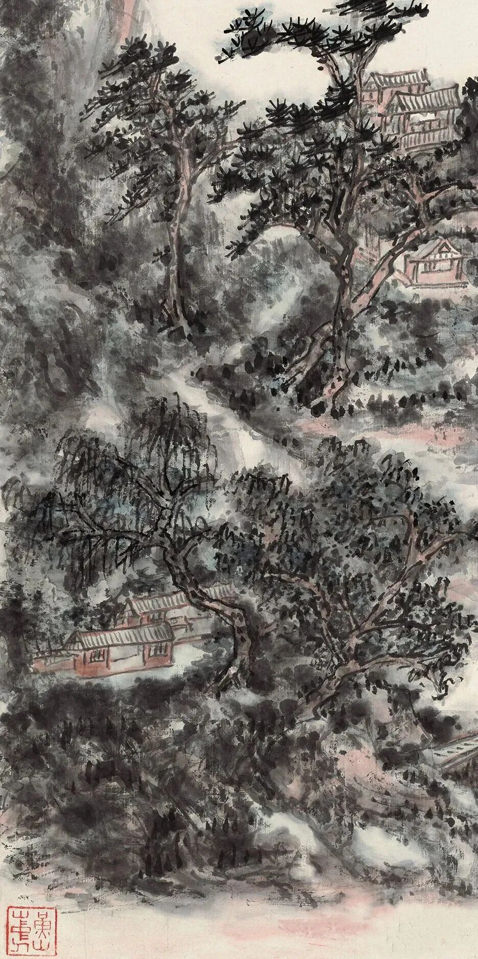 在杭州的最后七年,是黄宾虹创作最为开放心魄的时期。在自然造化之间,栖霞岭下,西泠桥畔、灵隐、南北高峰、初阳台锤炼笔墨,处处留下足迹,其古典笔墨焕发出前所未有的独具时代特性的盎然生机。画面呈现出一派暂新的前所未有的灵光,一点一横均臻天真烂漫,随心所欲不逾矩的神明之境。